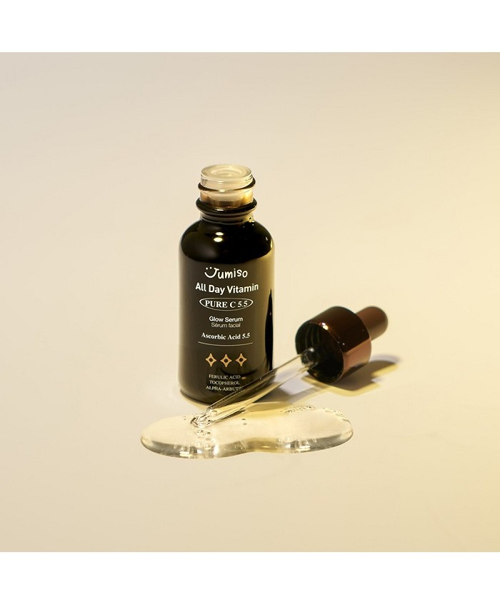 Jumiso - All Day Vitamin Pure C 5.5 Glow Serum - un ser pentru fata. Contine vitamina C sub forma de acid L-ascorbic si alfa-arbutina, care lumineaza decolorarea si ilumineaza pielea pentru o culoare uniforma si un aspect radiant.