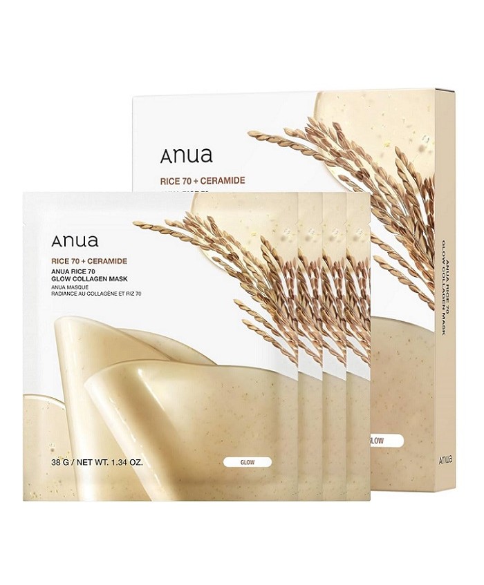 Anua Rice 70 Glow Collagen Mask este o masca intens hidratanta si iluminatoare, formulata cu 70% extract de orez si colagen hidrolizat. Aceasta masca ajuta la revitalizarea tenului, conferindu-i un aspect luminos si sanatos. Extractul de orez este cunoscut pentru proprietatile sale antioxidante si calmante, in timp ce colagenul imbunatateste elasticitatea si fermitatea pielii. Este ideala pentru tenul obosit, tern sau deshidratat, redand luminozitatea si vitalitatea acestuia.