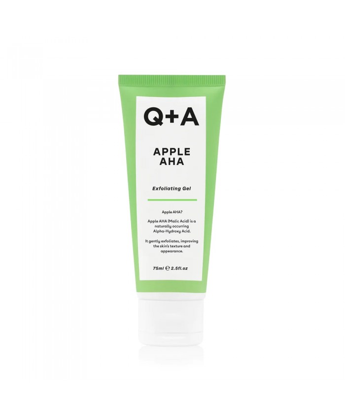 Q+A Apple AHA Exfoliating Gel se folosește în combinație cu Q+A Peppermint Daily Cleanser și Q+A 5-HTP Face and Neck Cream pentru a obține o piele luminoasă și revigorată, potrivită pentru toate tipurile de ten.