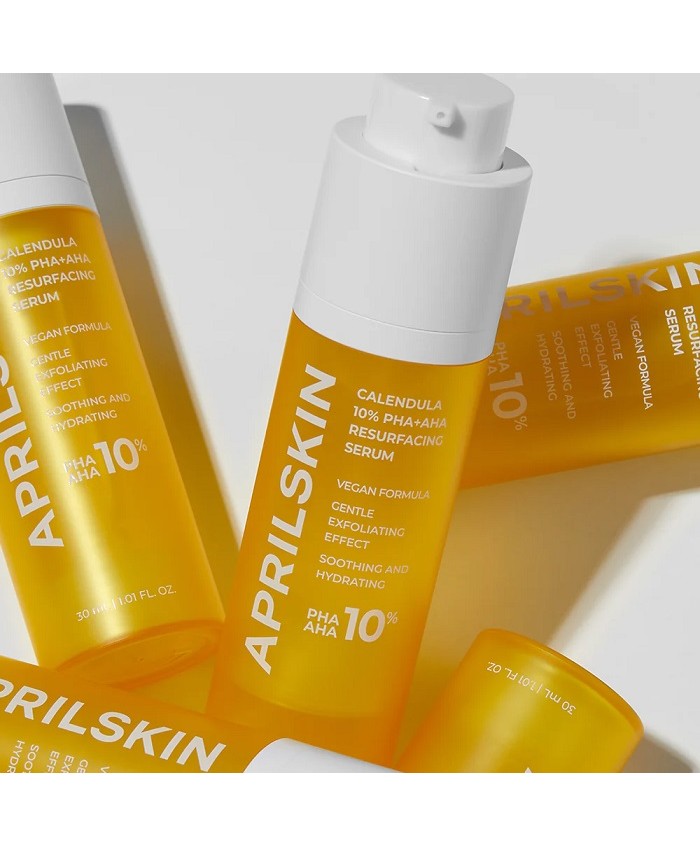 Aprilskin Calendula 10% PHA+AHA Resurfacing Serum este un ser exfoliant cu actiune delicata, creat pentru a ajuta la imbunatatirea texturii pielii si la uniformizarea nuantei acesteia. Contine un amestec de AHA (acid alfa-hidroxi) si PHA (acid polihidroxi), care ajuta la eliminarea celulelor moarte si la stimularea regenerarii pielii, lasand tenul mai neted si mai luminos. Extractul de calendula ofera un efect calmant, reducand iritatiile si inflamatiile, ceea ce face serul potrivit pentru toate tipurile de piele, inclusiv pentru pielea sensibila.