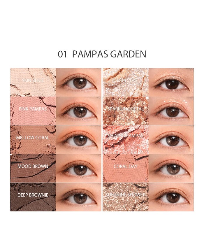 Rom&nd - Better Than Palette - 01 Pampas Garden - o paleta de farduri de ochi care contine pana la 10 culori calde, de la tonuri nude deschise pana la maro ciocolatiu, inclusiv 4 culori stralucitoare.