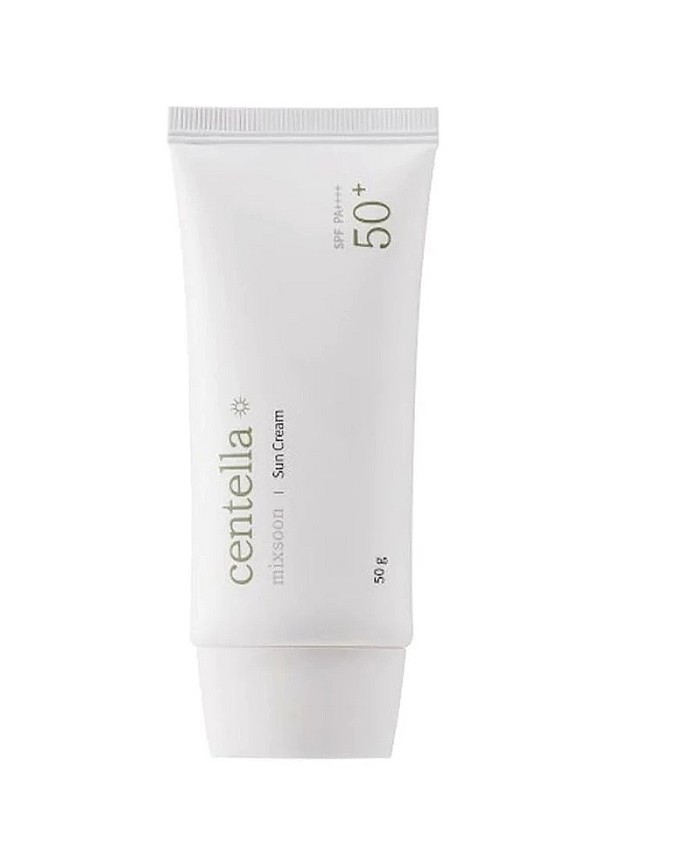Mixsoon - Centella Sun Cream - SPF50+/PA++++ - o crema de fata cu un nivel ridicat de protectie solara. Are o textura usoara, care se absoarbe rapid in piele, fara a lasa o senzatie de grasime. Produsul contine, de asemenea, extract de Centella Asiatica pentru proprietatile sale calmante si hidratante, precum si ulei de lavanda pentru a promova regenerarea pielii.