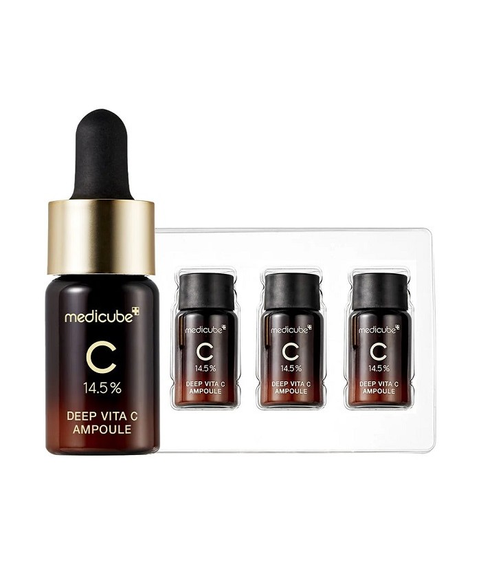 Medicube - Deep Vita C Ampoule - un set de trei fiole pentru un ten care are nevoie de iluminare si fermitate. Vitamina C concentrata, continuta in compozitia produsului, va elimina efectele nocive ale radicalilor liberi, va reduce decolorarea si va intari bariera hidro-lipidica a epidermei.