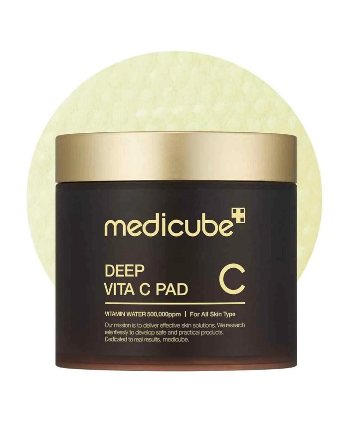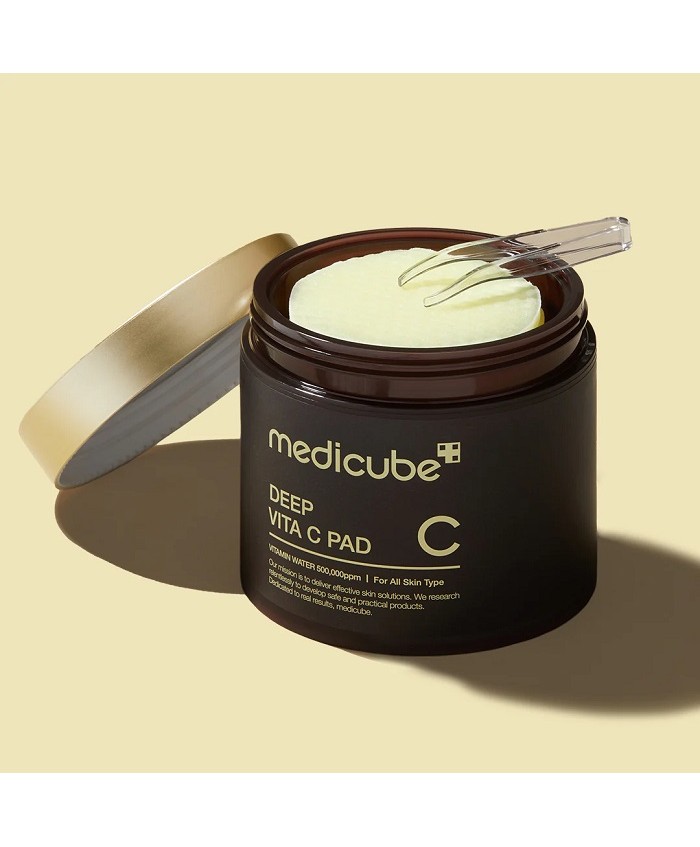 Medicube - Deep Vita C Pad - dischete de ingrijire a pielii fetei cu efect iluminator si tonifiant. Culoarea lor galbena subtila este un pigment natural derivat din extract de catina de mare, care, datorita proprietatilor sale valoroase, calmeaza iritatiile si reduce dezvoltarea bacteriilor responsabile de formarea leziunilor acneice.