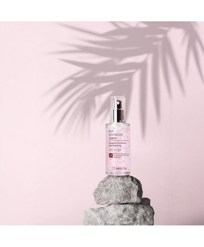 Dr. HEDISON EGF Revitalize Serum este un ser de ingrijire a pielii avansat, formulat pentru a ajuta la revitalizarea si regenerarea epidermei. Principalul ingredient activ al acestui serum este Factorul de Crestere Epidermica (EGF), o proteina care stimuleaza producerea de colagen si accelerarea procesului de vindecare a pielii.