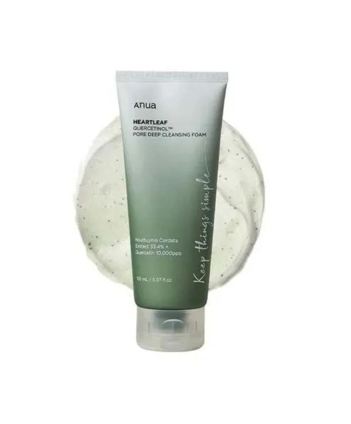 Anua Heartleaf Quercetinol Pore Deep Cleansing Foam este o spuma de curatare imbogatita cu pudra de houttuynia cordata pentru a indeparta celulele moarte ale pielii si pentru a curata porii in profunzime.