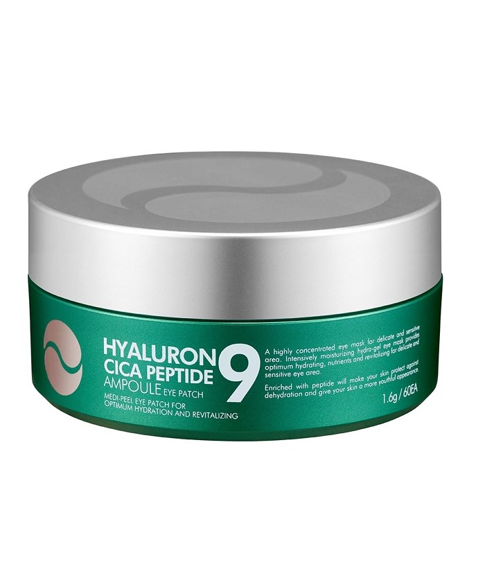 Patch-urile hidrogel calmante cu peptide Medi-Peel Hyaluron Cica Peptide 9 Ampoule Eye Patch amelioreaza inflamatia in cel mai scurt timp posibil, hidrateaza activ, elimina uscaciunea si ajuta la combaterea descuamarii. Complexul de peptide are un efect de intinerire, ajuta la netezirea ridurilor. Patch-urile sunt multifunctionale, pot fi folositi in zona din jurul ochilor, in zona sprancenelor si a pliurilor nazolabiale.