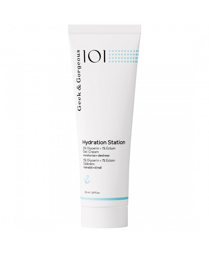 Hydration Station este o emulsie usoara si racoritoare cu textura de crema/gel. Formula contine Glicerina, standardul de aur al ingredientelor hidratante si Ectoina, molecula superstar pentru protectia celulelor pielii.