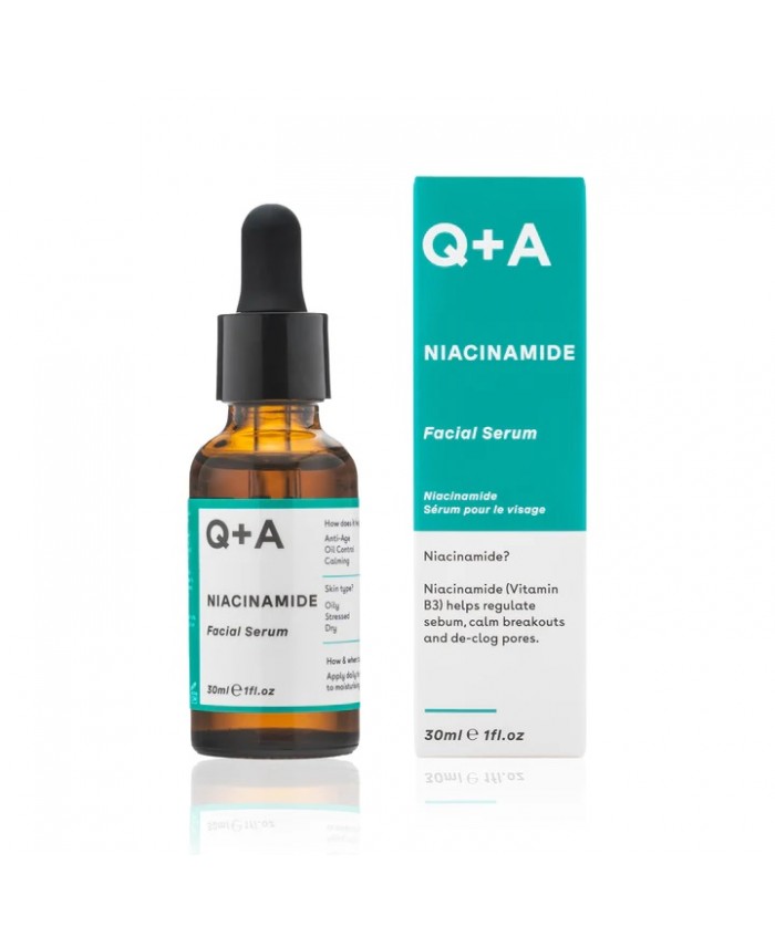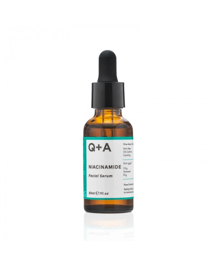 Q+A - Niacinamide Facial Serum - un ser facial echilibrant cu niacinamidă, care luminează tenul și reglează secreția de sebum. Prezența hialuronatului de sodiu și a alantoinei influențează nivelul adecvat de hidratare a epidermei și calmează iritațiile.