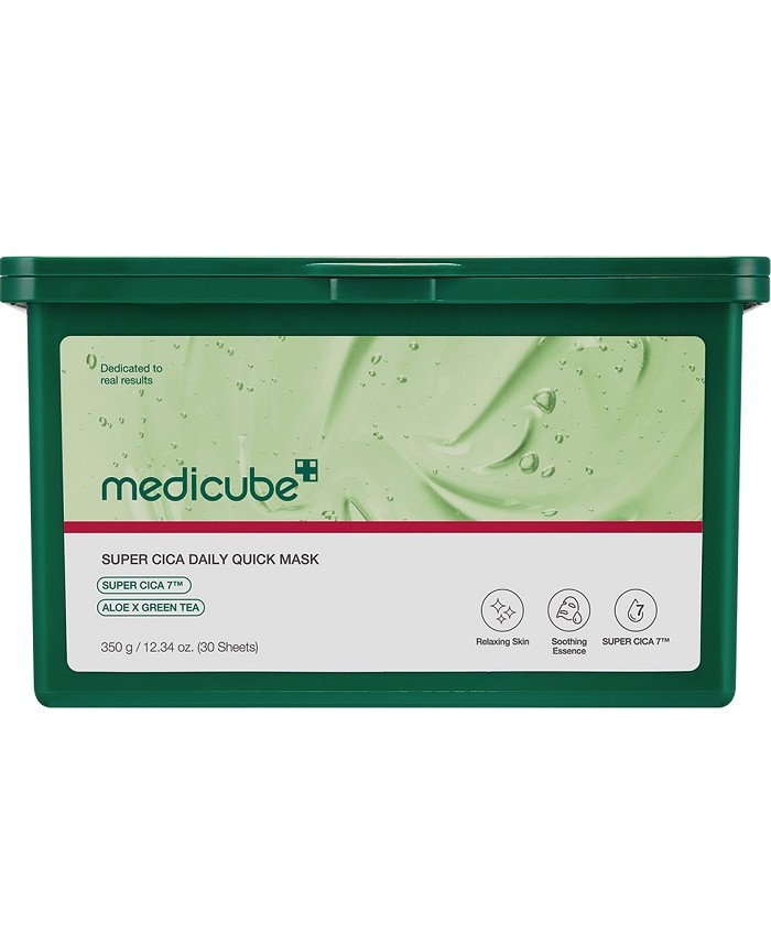 Super Cica Daily Mask Medicube este o masca faciala revitalizanta, creata pentru a ajuta la calmarea si hidratarea pielii sensibile, cu tendinte de iritatie sau roseata. Este formulata cu ingrediente active din gama „Cica” (Centella Asiatica), cunoscuta pentru proprietatile sale de regenerare si reparare a pielii. Aceasta masca este destinata utilizarii zilnice si este ideala pentru pielea sensibila sau afectata de stres, acneea sau alte afectiuni dermatologice.