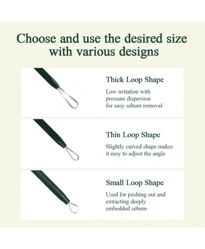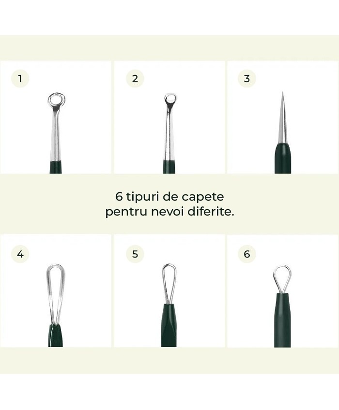 1. Dupa spalarea fetei, dezinfectati zonele cu probleme si produsul. 2. Cu ajutorul extractorului adecvat, indepartati defectele.SET INSTRUMENTE EXTRACTIE PUNCTE NEGRE PIMPLE EXTRACTOR din gama Skinseen!