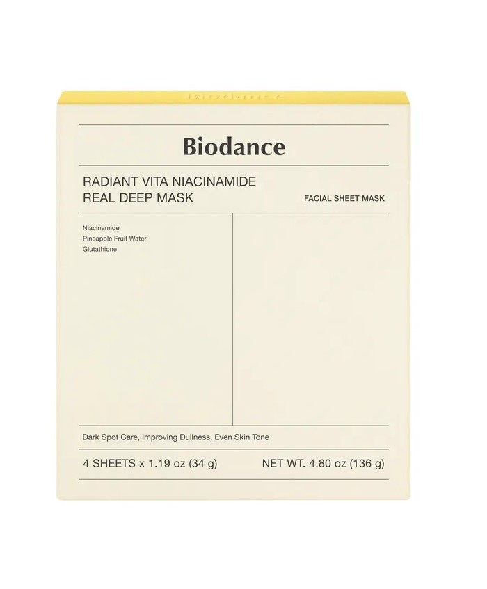 Biodance Radiant Vita Niacinamide Real Deep Mask este o masca faciala avansata, conceputa pentru a imbunatati tonul, textura si stralucirea pielii. Formulata cu ingrediente active precum Niacinamida, Glutation de puritate inalta si apa de ananas, aceasta masca ofera o exfoliere delicata si o hidratare profunda, contribuind la uniformizarea tonului pielii si reducerea petelor pigmentare.