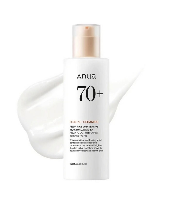 Anua Rice 70 Intensive Moisturizing Milk este o emulsie usoara ce hidrateaza in profunzime, intareste si ofera echilibru pentru toate tipurile de piele, dar mai ales pentru pielea terna pentru a crea o stralucire de sticla pielii. Aceasta crema blanda de fata contine apa hranitoare de orez si extract de orez, niacinamida luminand si ceramide de intarire, care impreuna ajuta la aducerea stralucirii pielii obosite.