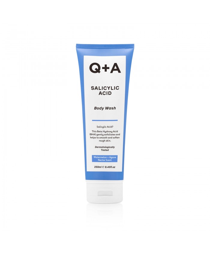 Masează ușor pe pielea umedă în timpul dușului și clătește bine. Pentru rezultate optime, aplică apoi Salicylic Acid Smoothing Lotion de la Q+A.SALICYLIC ACID BODY WASH - Ingrediente Principale