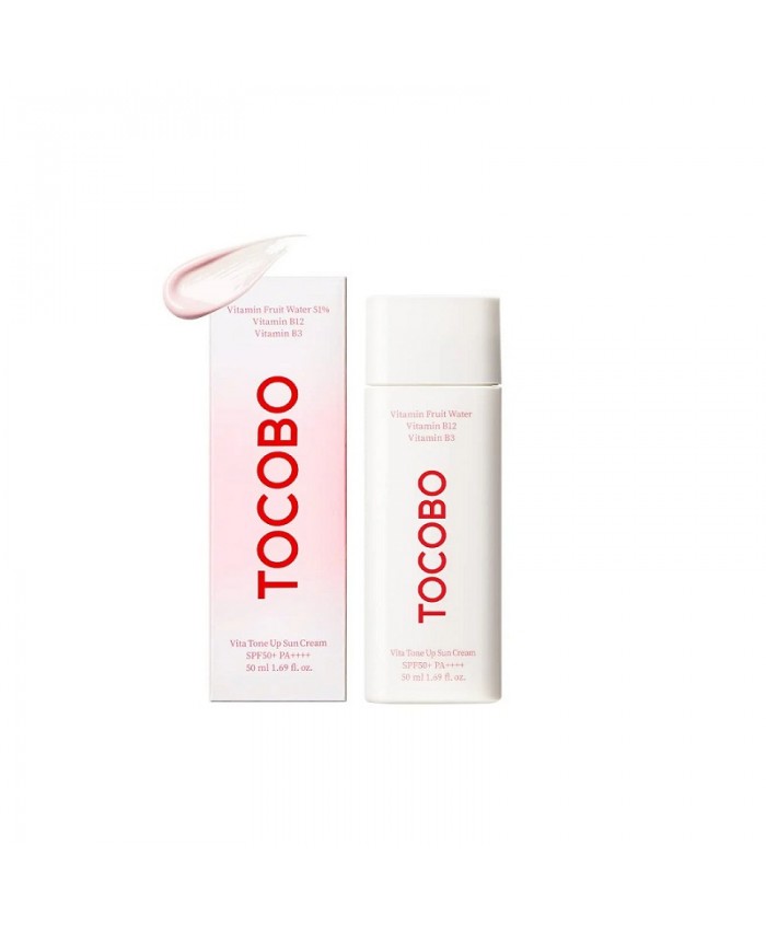 TOCOBO Vita Tone Up Sun Cream SPF50+ PA++++ este o crema de protectie solara hidratanta si delicata, cu o usoara nuanta roz si o textura laptoasa asemanatoare unei lotiuni. Formula sa vegana multifunctionala se absoarbe rapid si ofera o hidratare intensa, lasand pielea cu un tonus luminos si revitalizat.